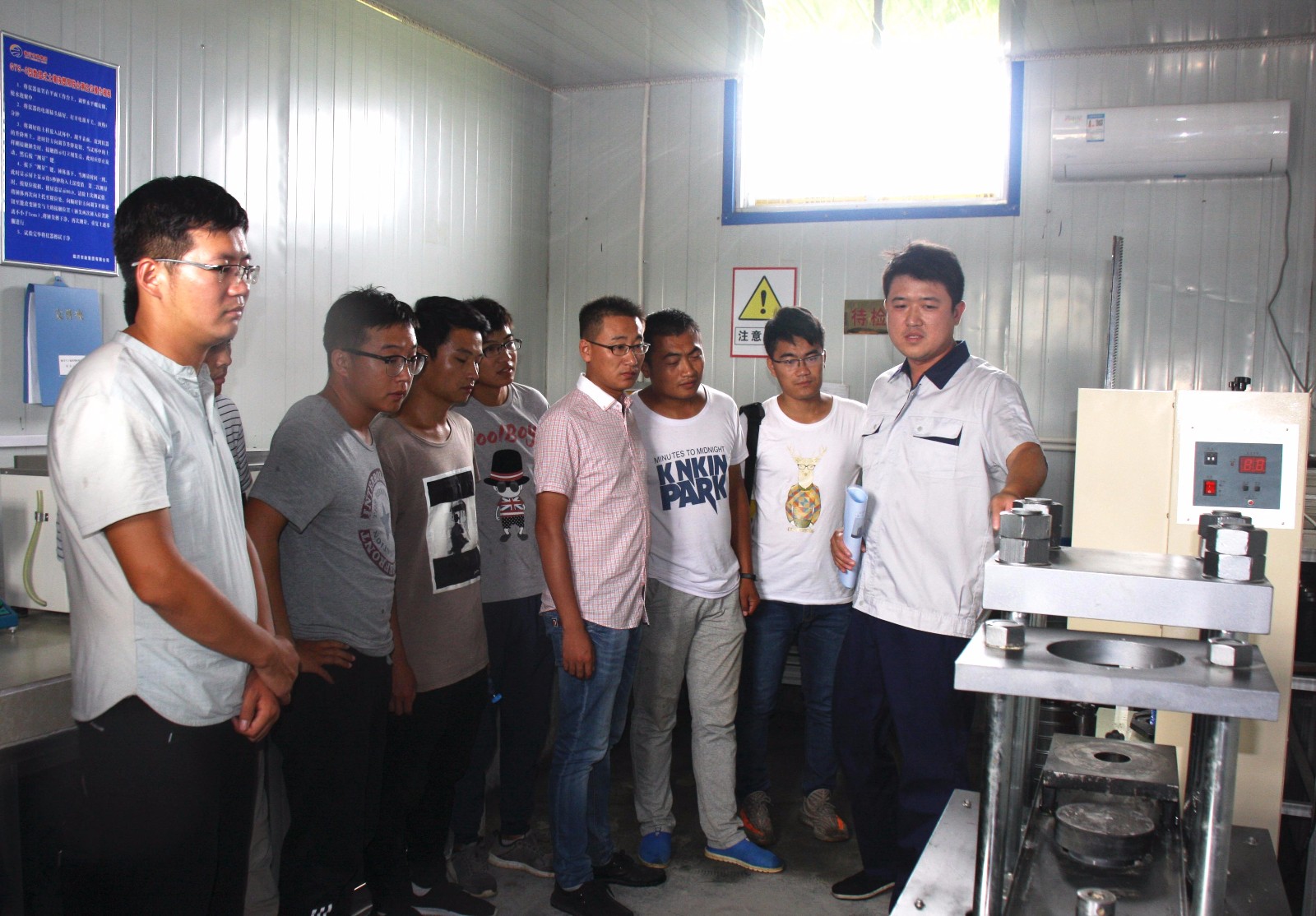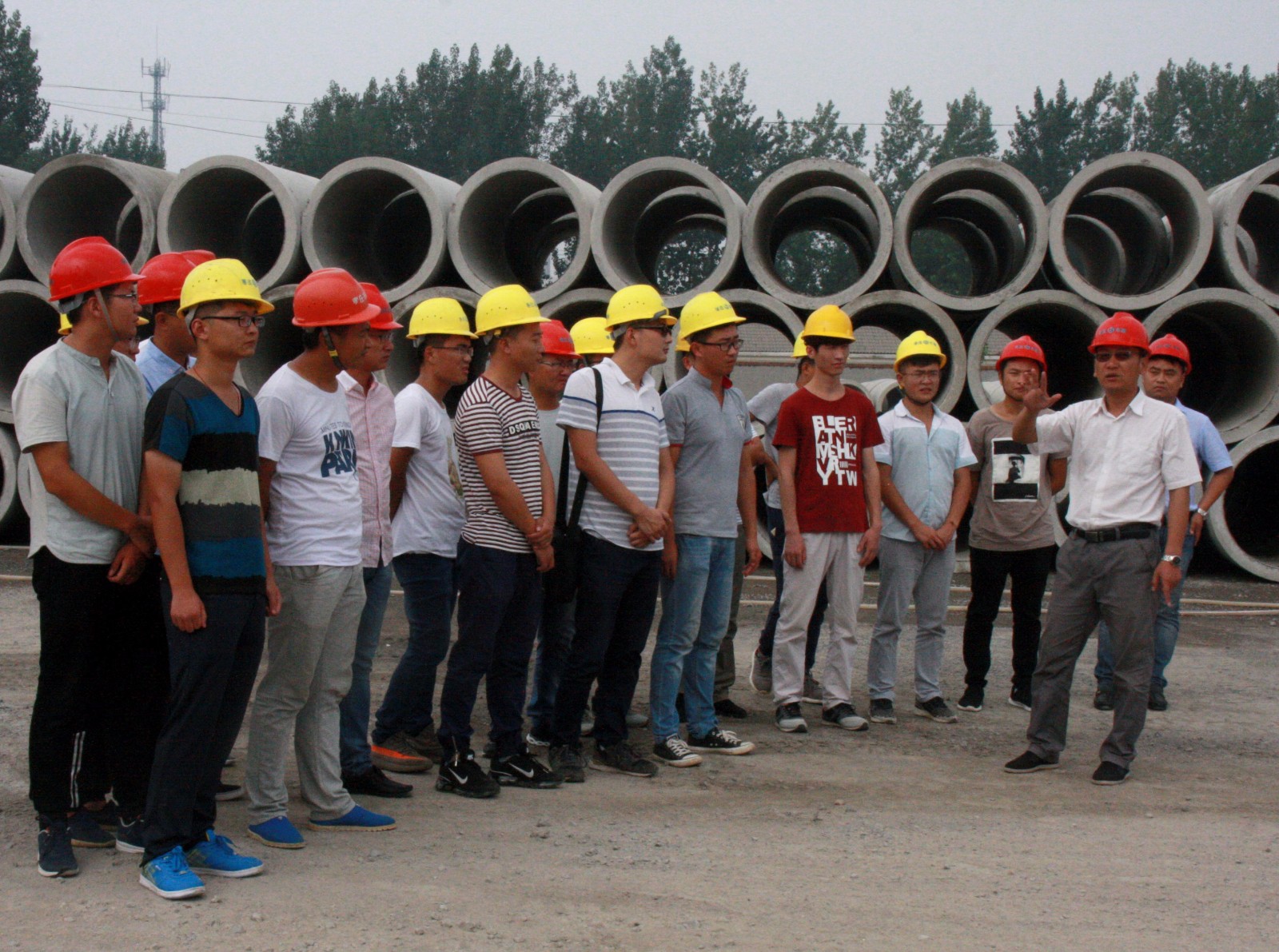 18日上午的現(xiàn)場觀摩培訓首先來到了弘偉建材分公司,公司黨總支書記、常務副總經(jīng)理夏士泉早早來到弘偉建材分公司對新進員工表示的歡迎,并發(fā)表了熱情洋溢的講話。夏總在講話中指出,希望新員工盡快的熟悉企業(yè)文化和制度規(guī)范、明確自身職責,更好的融入公司,增進歸屬感,在為企業(yè)做出更多更大貢獻的同時,通過企業(yè)平臺不斷提升個人素質(zhì),實現(xiàn)個人價值的體現(xiàn)和提升。在實地參觀弘偉建材分公司和遠建路橋分公司時,董健和李龍經(jīng)理分別向大家詳細介紹分公司職能及相關業(yè)務知識,使大家對預制產(chǎn)品生產(chǎn)、路面材料生產(chǎn)及機械化施工等相關業(yè)務有了一個基本的認識。18下午,新員工實地參觀了345項目工程,通過馬曉軍副經(jīng)理和夏濤副經(jīng)理的講解,大家對公司當前重點項目建設狀況、項目部建設及工地實驗設備使用以及施工管理有了一個直觀的了解。在進行橋梁板材加工的梁場參觀時,已經(jīng)在項目上工作了一段時期的新入職員工,現(xiàn)場轉變角色,從參觀者變成講解員,向同行的其他新員工們介紹了自己認識的橋梁板材預制和工地施工工作。