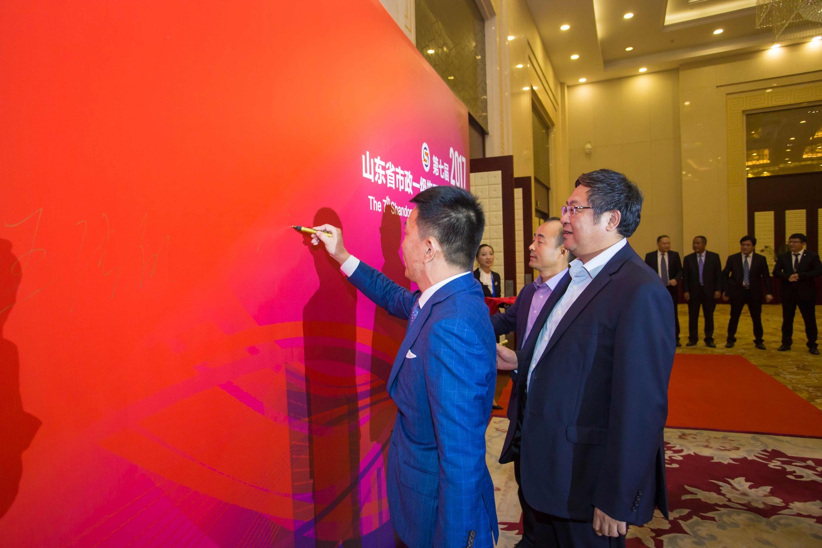 13日下午,全體與會(huì)人員首先一同參加了本次論壇年會(huì)的市政工程揚(yáng)塵治理現(xiàn)場(chǎng)觀摩活動(dòng)。本次現(xiàn)場(chǎng)觀摩工程為棗莊市文化體育中心項(xiàng)目。該項(xiàng)目為棗莊市政建設(shè)集團(tuán)2017年承建的一項(xiàng)綜合性市政工程項(xiàng)目。由于建設(shè)標(biāo)準(zhǔn)高、現(xiàn)場(chǎng)管理規(guī)范、揚(yáng)塵治理工作成績(jī)突出,該項(xiàng)目獲評(píng)2017年度“山東省市政公用工程安全文明工地”稱號(hào)。在工地現(xiàn)場(chǎng),該項(xiàng)目承建部門棗莊市政集團(tuán)市政工程公司項(xiàng)目部向現(xiàn)場(chǎng)觀摩嘉賓詳細(xì)匯報(bào)了項(xiàng)目概況、項(xiàng)目特點(diǎn)、新材料新工藝應(yīng)用和現(xiàn)場(chǎng)管理經(jīng)驗(yàn)。與會(huì)嘉賓邊走邊聽(tīng)邊看,詳細(xì)了解了項(xiàng)目基本情況,對(duì)項(xiàng)目建設(shè)水平和工程管理水平表示贊賞?;氐綍?huì)場(chǎng)后,山東省城市建設(shè)管理協(xié)會(huì)市政分會(huì)主持召開了第七屆山東省市政一級(jí)施工企業(yè)發(fā)展論壇暨揚(yáng)塵治理經(jīng)驗(yàn)交流會(huì),山東省城市建設(shè)管理協(xié)會(huì)市政分會(huì)副會(huì)長(zhǎng)、青島市政空間開發(fā)集團(tuán)有限責(zé)任公司總經(jīng)理夏祥聚主持會(huì)議。會(huì)上,首先舉行了“山東省城市建設(shè)管理協(xié)會(huì)市政分會(huì)會(huì)旗授旗儀式”。授旗之前,夏祥聚副會(huì)長(zhǎng)代表協(xié)會(huì)向與會(huì)代表闡述了授旗儀式的重要意義。隨后,山東省城市建設(shè)管理協(xié)會(huì)市政分會(huì)會(huì)長(zhǎng)、濟(jì)南城建集團(tuán)有限公司總經(jīng)理牟曉巖代表協(xié)會(huì)向棗莊市政建設(shè)集團(tuán)及已承辦過(guò)論壇的單位授予協(xié)會(huì)會(huì)旗及紀(jì)念會(huì)旗。授旗儀式結(jié)束后,棗莊市政建設(shè)集團(tuán)、濟(jì)南城建集團(tuán)有限公司、青島市政空間發(fā)展集團(tuán)有限公司、青島海德路橋工程股份有限公司、山東中宏路橋建設(shè)有限公司、濰坊市政工程股份公司、日照市政工程有限公司、臨沂市政集團(tuán)有限公司、菏澤城建發(fā)展集團(tuán)有限公司等會(huì)員單位代表分別就各自在企業(yè)發(fā)展中的一些好的做法和經(jīng)驗(yàn)進(jìn)行了主題發(fā)言。會(huì)后,東道主棗莊市政建設(shè)集團(tuán)邀請(qǐng)全體與會(huì)嘉賓參加了冷餐晚宴活動(dòng)。全體與會(huì)嘉賓在冷餐晚宴的現(xiàn)場(chǎng)通過(guò)紅毯入場(chǎng),在觀看了棗莊市政建設(shè)集團(tuán)企業(yè)宣傳片過(guò)后,伴著現(xiàn)場(chǎng)演奏的輕音樂(lè),在融洽輕松的氣氛中進(jìn)行了深入交流,將整個(gè)年會(huì)論壇活動(dòng)推向了高潮。14日上午,在協(xié)會(huì)組織下,全體與會(huì)嘉賓共同聆聽(tīng)了來(lái)自浙江大學(xué)的梁飛教授作的題為“教練領(lǐng)導(dǎo)力(打造優(yōu)秀團(tuán)隊(duì)及高效執(zhí)行力)”專題講座。講座結(jié)束后,全體與會(huì)嘉賓合影留念。