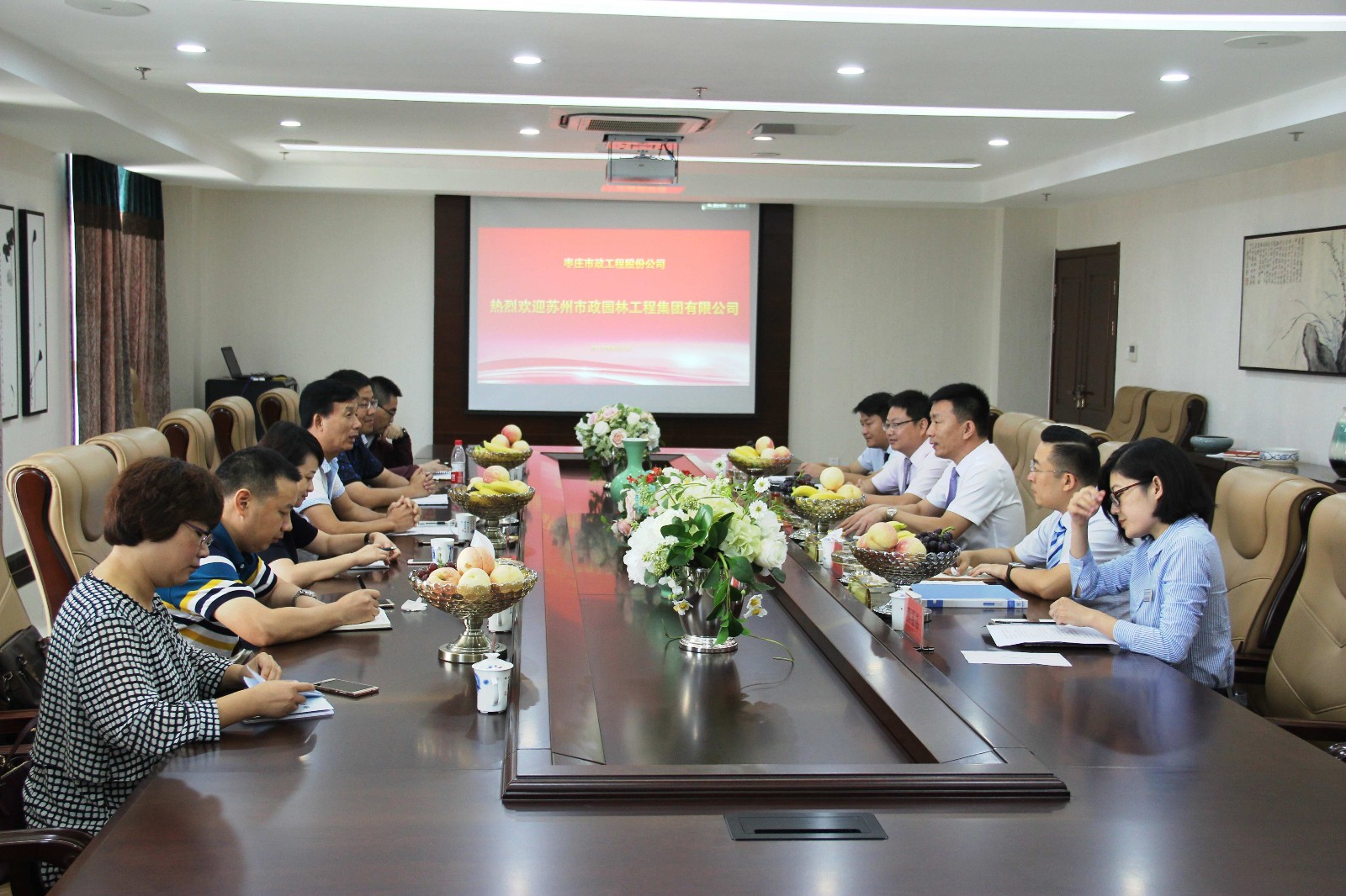 9月7日,蘇州市政工程集團(tuán)有限公司湯正才董事長(zhǎng)一行蒞臨公司考察交流。董事長(zhǎng)趙峰、副總經(jīng)理劉博及人企部、行政部、工程管理部、財(cái)務(wù)部負(fù)責(zé)人陪同座談。